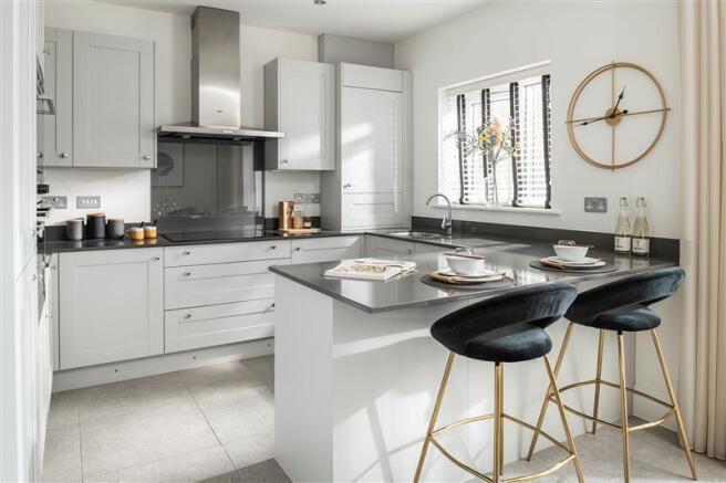 Elevated internal specification where extras come as standard. Including oak finish internal doors, oak handrail and newel post cap to stairs, integrated appliances including fridge freezer, dishwasher and oven, quality British made kitchens, rainfall shower in the master ensuite, in roof solar PV, landscaped front garden and turf to rear garden, downlighters to kitchen, bathroom, ensuite and WC.