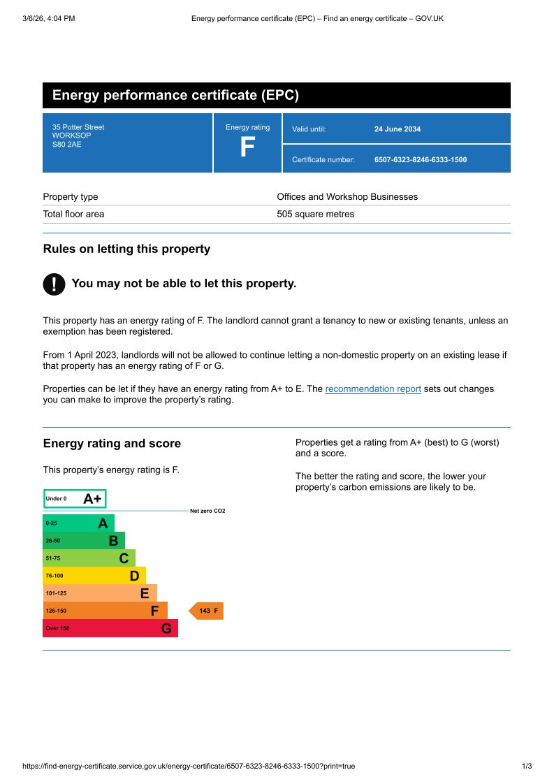 EPC 135 Potter Street, Worksop, Nottinghamshire, S80 2AE