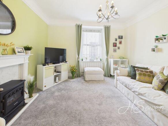 High Ceilings, coving. Wall mounted electric heaters. Rear elevation double glazed window. Feature fireplace.