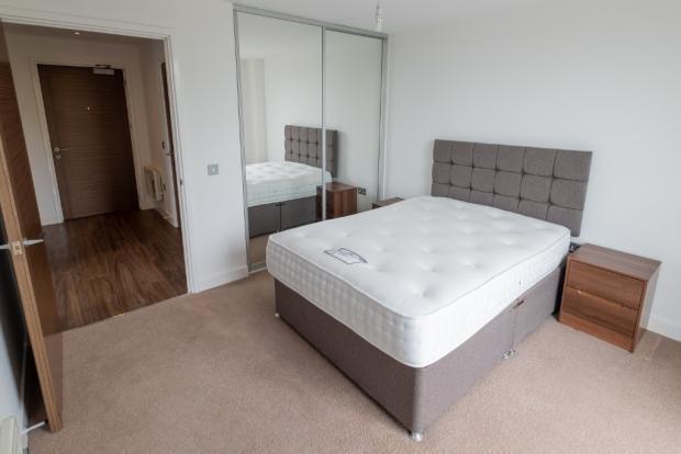 This spacious one-bedroom apartment comes fully furnished with an all-inclusive contemporary furniture package. There is a large mirrored wardrobe, double bed and orthopaedic mattress, as well as a bedside table and chest of drawers in the bedroom. The kitchen has fully integrated appliances, including electric oven and hob, a fridge-freezer, a dishwasher and a separate washer/dryer. In the living area, there is a contemporary glass dining table with matching four chairs and a two-seater sofa. The bathroom has a bath and shower, a heated towel rail, large walled mirror and sink with storage drawer. There is also a high-speed Hyperoptic broadband service already installed.