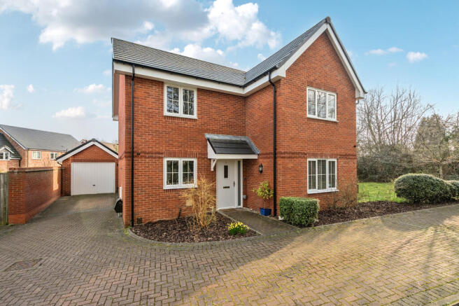 To the front of the home there is a driveway, providing parking for several vehicles, which leads to the detached garage. The decorative front garden is bordered by attractive and mature shrub borders. The rear garden is a good size, being one of the largest in the close, enjoying a sunny aspect and offers a degree of privacy with fenced boundaries. The garden, which wraps around the home, is predominantly laid to lawn and is flanked by pretty floral beds and borders. There is a large terrace, ideal for outdoor entertaining and dining.