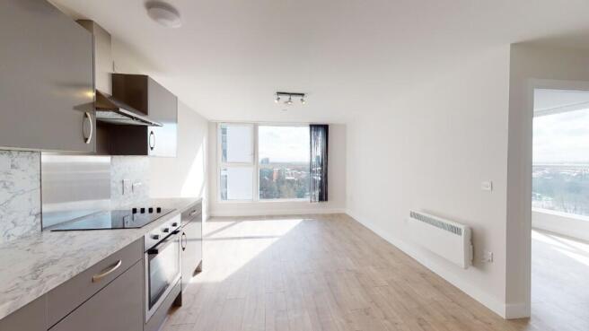 This apartment comprises of a modern kitchen with integrated appliances including full sized dishwasher and washer/dryer. With a bright open plan living room with floor to ceiling windows offering spectacular city views, one spacious bedroom and bathroom with shower over bath.
