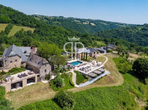 Fabulous country estate with income streams on a promontory overlooking the Aveyron River and offering spectacular views of the surrounding countryside, spanning approximately 16 hectares of sloping land with woodland on either side of the buildings, with approximately 700 m2 of living space and a total of 15 bedrooms.