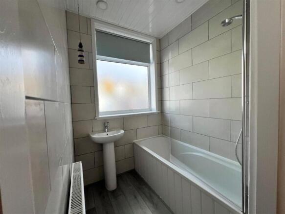 NEWLY TILED BATHROOM WITH SHOWER.