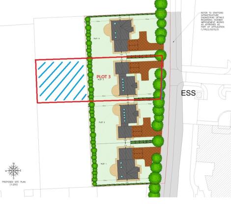 Please note: The measurements quoted include the agricultural land (marked in blue) to the rear of each plot. Prospective purchasers should be aware that when submitting a full planning application, the building line will need to be re -positioned towards the bottom of each plot in accordance with planning requirements.