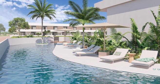 Set within beautifully landscaped tropical gardens, the development boasts a stunning communal pool area, offering a peaceful space to unwind or socialize.
