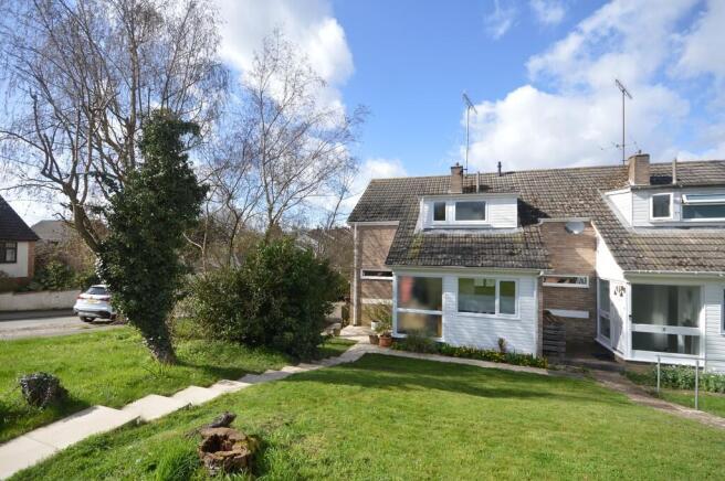 OUTSIDE Steps down to entrance door, laid to lawn front garden.