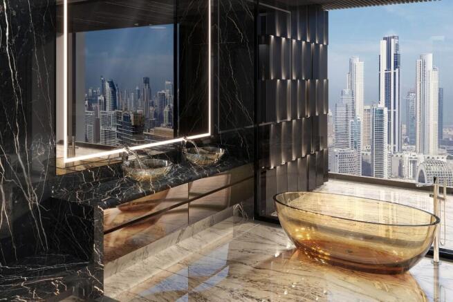 Commanding Business Bay's most prominent position, the tower offers 360-degree panoramas across Downtown, DIFC, Dubai Design District, and Dubai Creek Harbour, with Dubai Mall just three minutes away.