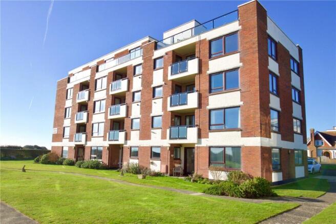 A generous dual-aspect living area with sweeping coastal views stretching from Hurst Castle across the Solent to the Isle of Wight and The Needles, continuing westwards towards Bournemouth Bay and the Purbecks. UPVC double-glazed windows to the south and east frame the outlook, while two recessed balconies (one south-facing and one east-facing) are accessed through double-glazed doors, both providing year-round sheltered outdoor space. Additional features include central heating radiators, wall lighting and a television point.