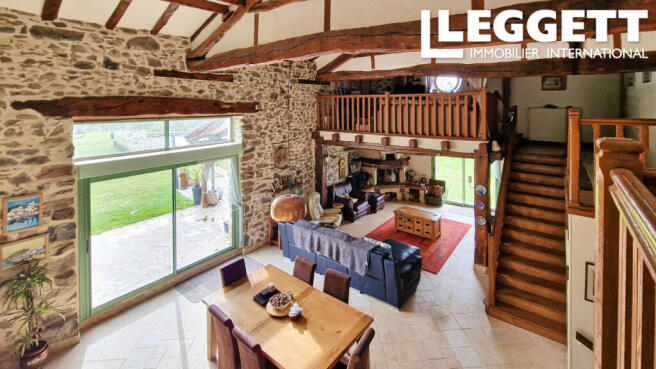 Enter through the front door into a large entrance lobby (15.78m²) off of which you have a shower room with wc (4.28m²) a ground floor bedroom (19.6m²) with French doors to the front of the property and a 2nd shower room with wc (8.46m²). The entrance lobby leads up to an impressive double height living/ dining room (58.4m²) with beautiful exposed timbers and stonework, 2 sets of patio doors with electric shutters and an insert woodburner to one end. From here is a fitted kitchen (22.m²) with a very practical mobile island with gas hob, electric oven and French doors onto the rear terrace. A door leads from the kitchen into a large utility room (20.5m²) which also has a door to the front of the property. All of the ground floor benefits from underfloor heating