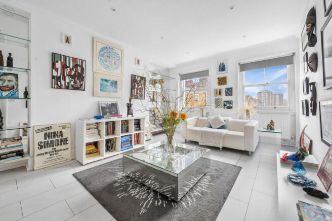 Enjoying far-reaching rooftop views across Marylebone, the apartment offers bright, well-balanced accommodation with an abundance of natural light, enhanced by a skylight in the central hallway. The property is accessed via a well-maintained communal hallway with the building itself showcasing classic Georgian architecture, including a part-stucco façade and decorative glazed detailing.