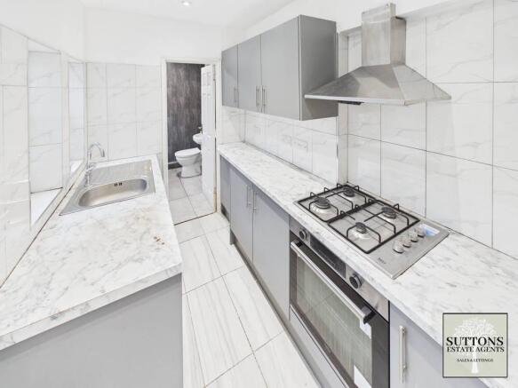 • Modern galley kitchen with newly fitted grey units and ample worktop space