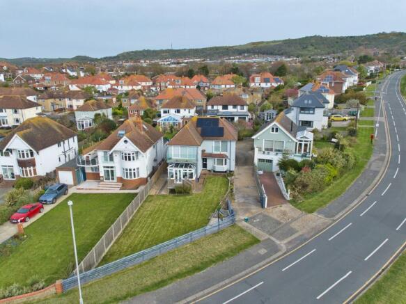 Set back from the road on a substantial plot, the property is approached via a long driveway providing ample parking and leading to a spacious double garage, creating an immediate sense of privacy and grandeur. Directly opposite, steps provide effortless access down to the beach and harbour, perfectly blending elevated living with coastal convenience.