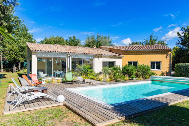 The property also includes a beautiful saltwater swimming pool, perfectly integrated into the outdoor space, ideal for relaxing in summer. The grounds are fully enclosed and secure.