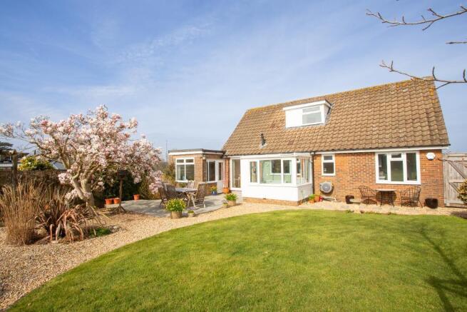 The rear garden also has a driveway off Sheepsetting Lane, through wrought iron gates. There is parking and access to the double garage which has a new, roller electric door. There is power, a personal door and a doorway through to a potting shed. This is mainly glazed with a door out to the garden. Alongside the driveway is a nicely concealed bin and compost area with purpose built compost bins. Two flowering Cherry trees, fencing and large shrubs surround this area. The garden has been thoughtfully landscaped with shingle and flagstone pathways, properly bedded in, with brick edging. There is a pretty, rose covered pergola in an area of shingle garden, shaded by a Magnolia tree and with central ornamental grass bed. An abundant azalea bed is to one side and then the shaped, level lawn is boarded with stocked flower beds. The garden will appeal to gardeners as the planting is carefully planned to have a show of colour for most of the year.