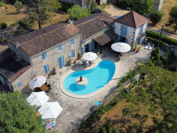 A very desirable 4 bedroomed stone built imposing property in excellent condition throughout. The property boasts en-suites spacious accommodation and would make for a lucrative income in the Bed and Breakfast market. Situated in the countryside, not isolated with stunning views of the famous chateau of Duras. Only 5 minutes to all amenities.