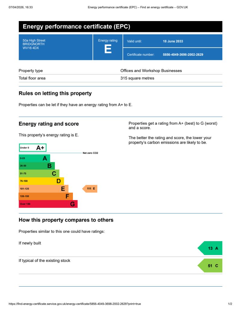 EPC 150A High Street, Bridgnorth, Shropshire, WV16 4DX