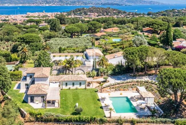 Absolutely exceptional 5 bedroom luxury villa nestling in over one acre of beautiful landscaped gardens with expansive pool and vines, while enjoying panoramic sea views from its prestigious location in Saint Tropez.