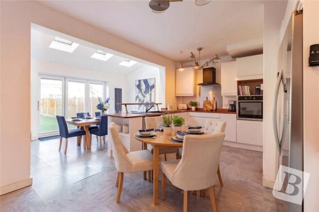 13'4 x 8'6. Double glazed bi-fold doors with inset blinds to rear leading to garden, three double glazed skylights, two vertical feature radiators, tiled flooring, smooth ceiling with inset spotlights, door to: