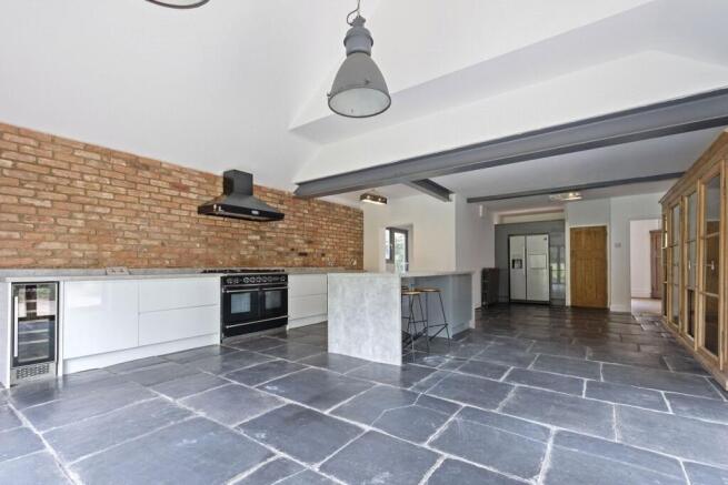 • The ground floor comprises two spacious reception rooms, providing versatile living and entertaining space. To the rear, an impressive open-plan kitchen and dining area features stylish slate stone flooring, a contemporary fitted kitchen with a central island, and striking dual-aspect bi-fold doors. These flood the space with natural light and seamlessly connect the indoors with the garden—ideal for summer entertaining.