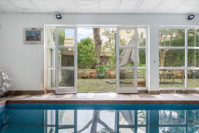 The villa also includes a heated indoor swimming pool opening directly onto the garden, creating a serene and light-filled environment that can be enjoyed all year round.