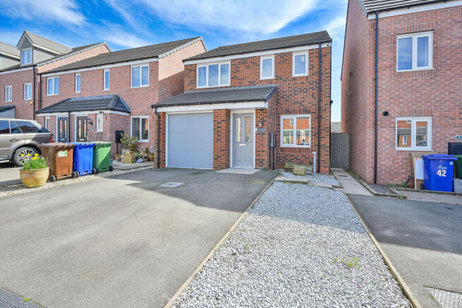 Set on an attractive plot, the property enjoys a driveway providing off-road parking for multiple vehicles. The landscaped rear garden has been thoughtfully designed for low maintenance, featuring artificial turf, an Indian sandstone patio area and decorative graveled borders.