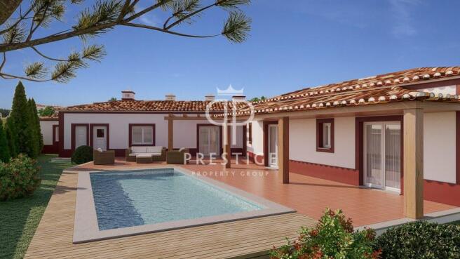 Spacious and bright new traditional Portuguese style 3 bedroom single-storey villa with pool and garage, located near all amenities in Caldas da Rainha.