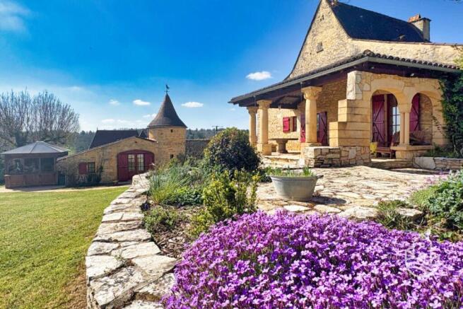 Located about twenty minutes south of Sarlat and five minutes from the nearest shops, this beautiful property with a guest house sits on a landscaped, wooded hectare of land with over 100 truffle oaks, a heated swimming pool, and a jacuzzi area.