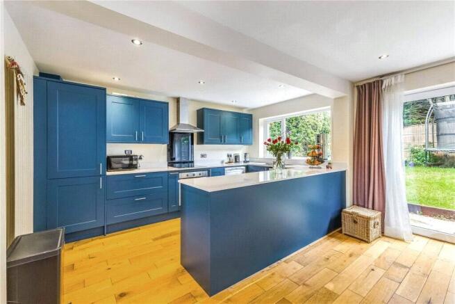 The property welcomes you via a front door into a bright entrance vestibule, complete with a convenient cloakroom. From here, you are led into a beautifully designed open-plan kitchen benefitting from new appliances and worktops in 2024, living, and dining area—the true heart of the home. This versatile space is finished in a contemporary style and provides ample room for both everyday family life and entertaining guests. Large patio doors open directly onto the northwest-facing rear garden, allowing natural light to flood the space while seamlessly connecting indoor and outdoor living.