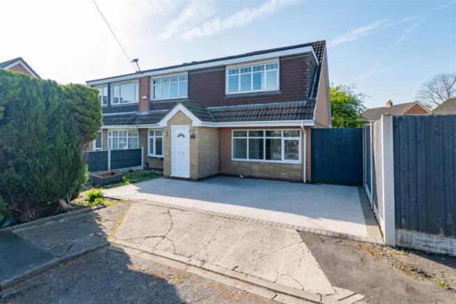 Upon entering, you are welcomed by an entrance porch leading into a spacious lounge situated to the front of the home, offering a comfortable and inviting living space. Moving through, you’ll find a dining room that seamlessly flows into a large conservatory, complete with French doors opening out to the garden, creating an ideal setting for entertaining. The extended modern kitchen is accessed from the dining room and boasts integrated appliances including a fridge/freezer, oven and five-ring electric hob. The ground floor also benefits from a versatile sitting room, created from the garage conversion, along with a useful storage room. Underfloor heating to the lounge, dining room and conservatory.
