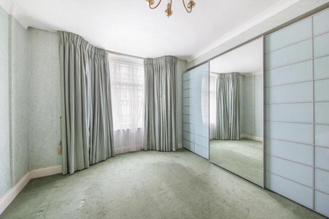 The flat features a generous reception room, ideal for both relaxing and entertaining, with ample space for dining. A separate kitchen is neatly arranged and practical, while the two double bedrooms are both well-sized, each benefiting from built-in storage. The principal bedroom is particularly impressive, with extensive fitted wardrobes and large windows allowing for plenty of natural light. A shower room completes the accommodation.