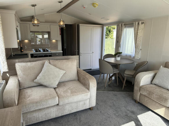 Front decking Side steps and access path Full lodge skirting Fully fenced garden with gate Astro turf garden Garden tap Concrete base 25-year licence Gas bottles and connection kit Gas test with certification Two Parking Spaces