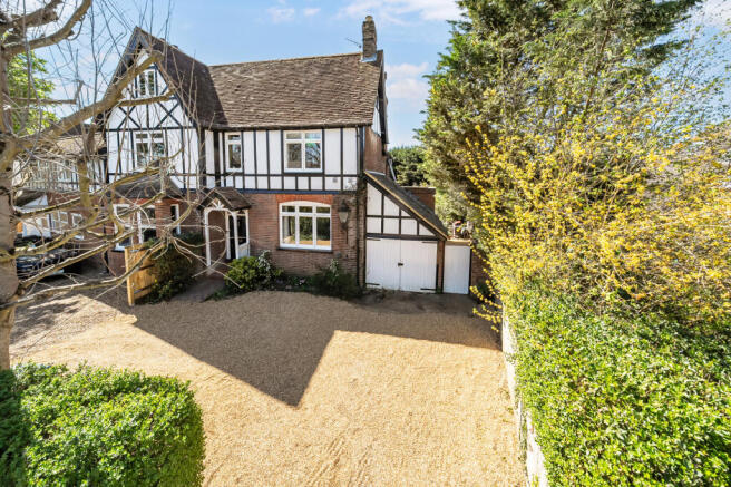 The property is approached via a generous gravelled private driveway with parking for up to three cars together with a single garage. A beautiful large southwest-facing garden sits at the rear, featuring a tiered wraparound terrace providing an ideal relaxing and entertaining space and a garden shed for storage.