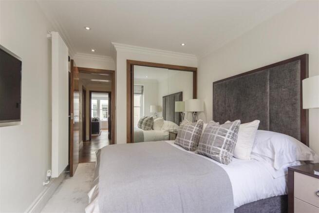 The apartment has been interior designed and finished to the highest of standards with high end modern finishes whilst retaining its original Grade II listed features from the original building. The apartment comprises splendid bedrooms with built in custom wardrobes one with en-suite bathroom, a luxurious reception room with bespoke furniture leading onto its own the privat patio, an exquisite polished marble bathroom and a fully fitted bespoke Miele kitchen. The apartment has access to the stunning communal gardens which is one of London’s few remaining traditional Garden squares.