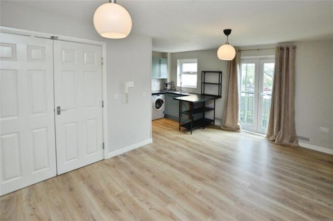 The accommodation briefly comprises a welcoming entrance hallway providing access to all rooms. The open-plan kitchen and reception area creates a versatile living space, enhanced by natural light. Patio doors open directly onto a balcony, extending the living area and providing an ideal spot to enjoy outdoor space. The kitchen is arranged in an open-plan layout with natural light and is complemented by a breakfast bar, offering a practical and sociable space for everyday dining and food preparation.