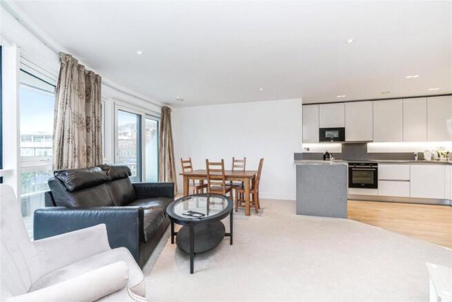 Comprising in brief: Secure ground floor communal entrance hall. First floor private reception hall with excellent storage. Superb reception room with open-plan kitchen, integrated appliances and access to the balcony. The principal bedroom also provides access to the balcony and features fitted wardrobes as well as a modern en suite shower room. There is also an additional double bedroom and family bathroom.