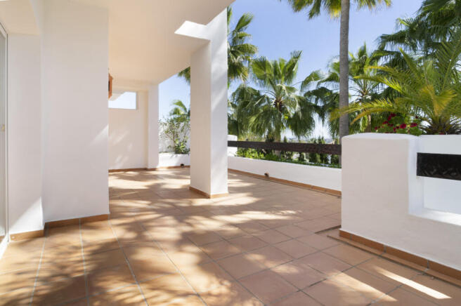 The apartment features a bright and well-proportioned living and dining area, designed for both relaxation and entertaining. The kitchen is fully independent, maintaining a sense of separation while remaining conveniently connected to the living space through a practical serving hatch. From the main living area, there is direct access to a private terrace, ideal for enjoying the warm climate of Nueva Andalucía throughout the year.