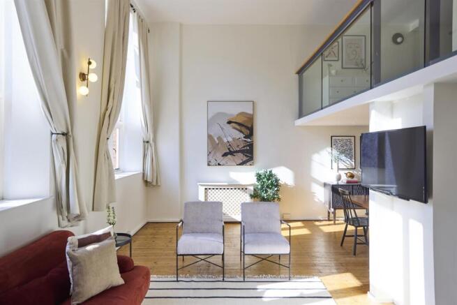 The development sits back from the leafy sweep of Cormont Road behind tall ornate gates. A handsome, red bricked exterior enjoys abundant original decorative detail and adornments. Steps lead up from the well-maintained communal grounds to a grand shared entrance. The on-site porter offers additional security and is most-helpful with taking packages and affording access to tradesmen when required. An added benefit of allocated off-street parking ensures your prized motor will be kept secure round the clock. The communal area supplies wonderful original detail and a plush hallway leading to your flat on the upper ground. Inside you're greeted by gorgeous original timber floors and crisp neutral decor. The formal dining area sits straight ahead - you'll easily seat 12 for Christmas. Past this, the ceilings rise to double height - the space positively sparkles in natural light owing to two huge original windows. There's a tonne of living, lounging and dining space and the contemporary kitchen neatly adjoins with a full range of appliances. Completing this floor is fitted storage and a well stocked bathroom. Steps lead upward to your mezzanine floors where a lovely double space to either side supply a flexible arrangement - slumber, study or further living space? There's easily space for two to work from home at once. From the mezzanine floor you can spy down over your fantastic reception below and really appreciate the scale of those wonderful ceilings.