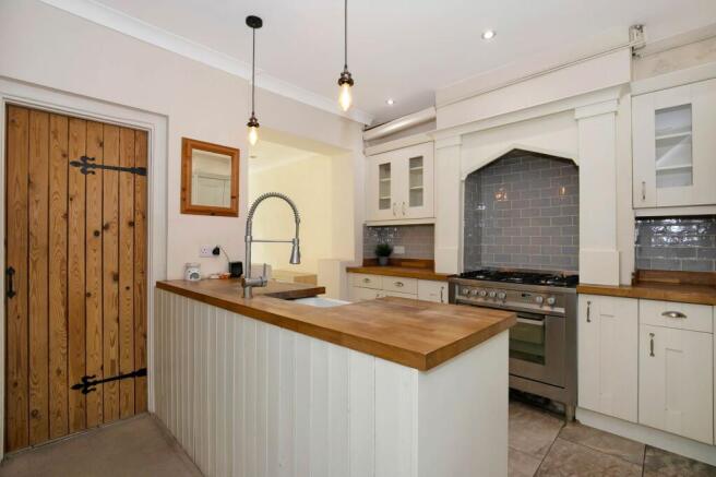 The property itself is full of character and charm. The cosy lounge features a wood-burning stove, creating a warm and inviting atmosphere. There is a country-style kitchen with a wonderful range of units, a range cooker, and beautiful oak worktops complemented by a Belfast sink. This space opens into an additional reception room, perfect for use as a dining room or study. A bathroom is also conveniently located on the ground floor.