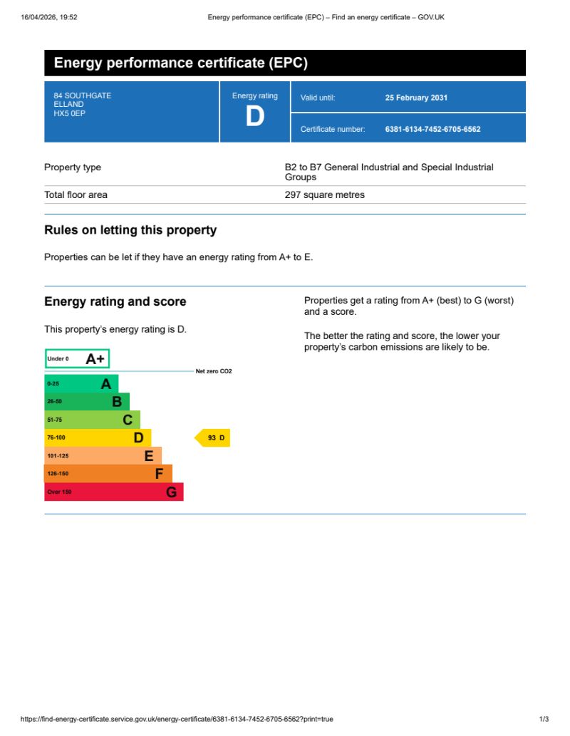 EPC 184 Southgate, Elland, West Yorkshire, HX5 0EP