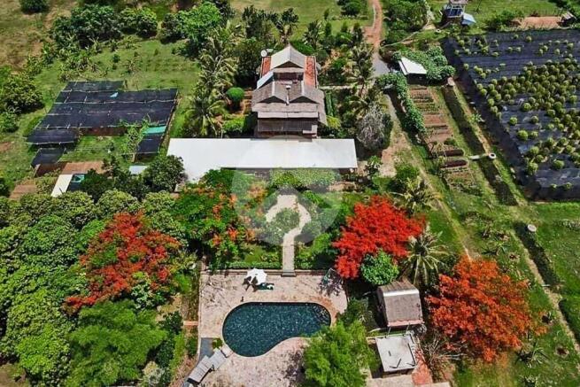 It includes fields of high-yield organic crops, including 200 avocado trees, 400 Kampot peppercorn poles, 50 vanilla poles, and a large asparagus plantation. These are completely irrigated and even included plenty of flowers to provide a charming aesthetic. Water is sourced from two (2) deep-water wells, two (2) water towers, and three (3) ponds.