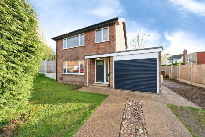 To the front of the property is a driveway providing off-road parking, a lawned garden area, access to the garage, and side access leading to the rear garden.