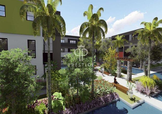 The units all face inward to a "water garden" - a large reflecting pool, combining tranquillity and natural beauty - with a communal swimming pool and landscaped "islands" within the water garden.