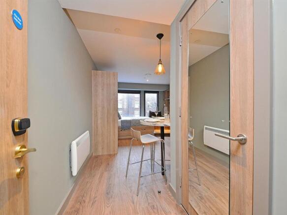 Relax in this Studio with a comfy double bed, your very own 32” TV and a study desk. Enjoy the privacy of your own ensuite bathroom this includes a toilet, sink and shower with plenty of space throughout the studio, storage and a double wardrobe for your belongings. With a fully equipped state-of-the-art kitchenette, students can cook something delicious and enjoy it at their very own breakfast bar. The kitchenette includes a fridge (with ice box) a combination microwave and a 4-ring induction hob.
