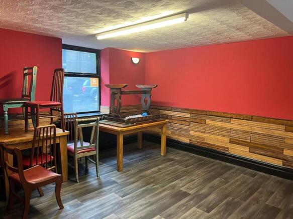 with entrance vestibule and having previously been used as a cafe's dining room. Generous in size and currently having commercial kitchen fittings.