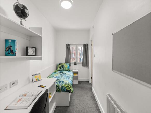 This room features a single bed, making it a more affordable option while still providing everything you need for a comfortable student lifestyle. Each bedroom is fully furnished with a study desk, plenty of storage, and your own private en-suite bathroom — giving you comfort and privacy whenever you need it.