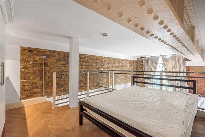 The property enjoys a large mezzanine bedroom area set above double height open-plan reception area with feature sash window and many original features including parquet wooden flooring and exposed brick, kitchen and bathroom. Offered with one parking bay.
