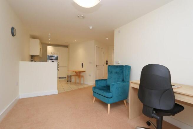 uPVC double doors leading onto the walk out balcony. Open plan to kitchen. Contemporary electric fireplace with surround and hearth.