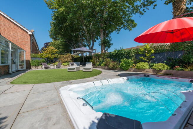 The rear garden is both large and family-friendly, offering plenty of space for entertaining, relaxing and play. The addition of a swim spa gives it a real lifestyle edge.