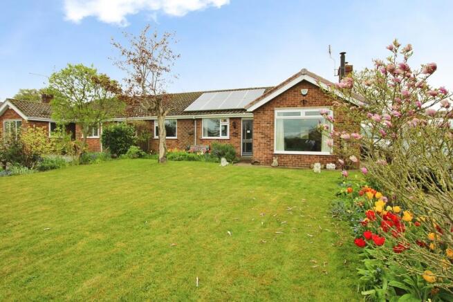 To the front of the property there are well maintained lawns with shrubbery, plants and a large driveway providing off-road parking. There is access to the rear via the side of the property. Solar panels are installed to the front roof elevation.
